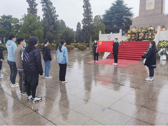 献完花后,举行庄重的宣誓仪式。“革命烈士永垂不朽”纪念碑高高矗立,每位同学站在纪念碑前,心中激动之心难以平复,宣誓时的声音更加洪亮,语气更加坚定。在默哀的一分钟里,仿佛看到了昔日战场上战士为民族大义殊死搏斗,甚至献出自己宝贵生命的情形,心中对先烈有了更崇高的敬意。