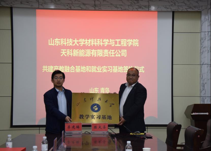 4月16日下午,今年会官网与天科新能源有限责任公司在J2-434会议室举行产教融合基地和就业实习基地签约仪式。学院党委副书记兼副院长李建楠与天科新能源有限责任公司总经理陈大圣在共建科技研发、教学实习和就业基地协议书上签字,并为基地揭牌。签约仪式由李建楠主持。
