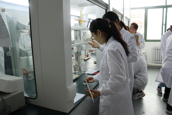 本次大赛邀请了王忠卫、魏文阁、黄小文和汪静四位专业老师对参赛选手操作进行打分,参赛选手来自材化专业以及高分子专业2018-2020级的学生。大赛开始之前,选手们随机抽取试剂编号,并根据所抽取编号的对应试剂进行酸碱滴定实验。同学们有条不紊地进行着各项操作,滴定、记录、计算,并逐步完善实验报告。指导老师根据学生实验操作规范性进行打分,笔试由专业老师出题、学习创新部整理,其中实验成绩占总成绩的60%,笔试成绩占总成绩的40%。