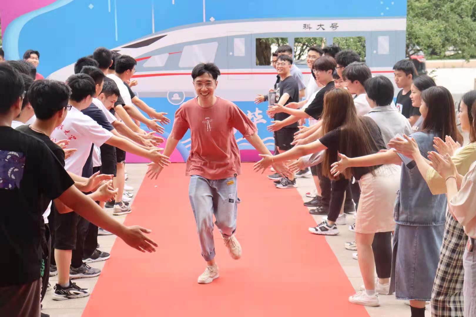 迈出“动车”、踏上红毯;歌声环绕、温情送别...6月24日,今年会官方网站各专业教师为每位2021届毕业生发放毕业资料,与毕业生合影,呈现了一场特别的送别仪式。
