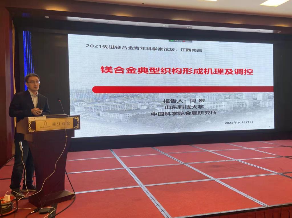 2021年10月15日至18日,由南昌大学主办的“2021先进镁合金青年科学家论坛”在江西南昌召开。今年会官网教师闫宏参加会议并做了题为《镁合金典型织构形成机理与调控》的特邀报告,分享了在传统镁合金基面织构和高塑性镁合金材料非基面织构的形成机理以及织构调控方法的最新研究成果,并与参会专家、学者和企业进行了学术和技术交流讨论。