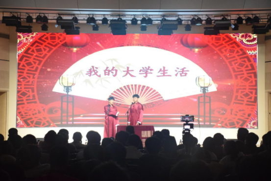 紧接着迎来下半场节目,由校大艺团成员带来的《despacito》、配音作品《大学生活二三事》、戏曲《四郎探母》、歌曲《男孩》、相声《我的大学生活》、乐曲《火车驶向云外,梦安魂于九霄》。流行与古典兼收,温情与火热并举,形式多样,精彩纷呈。