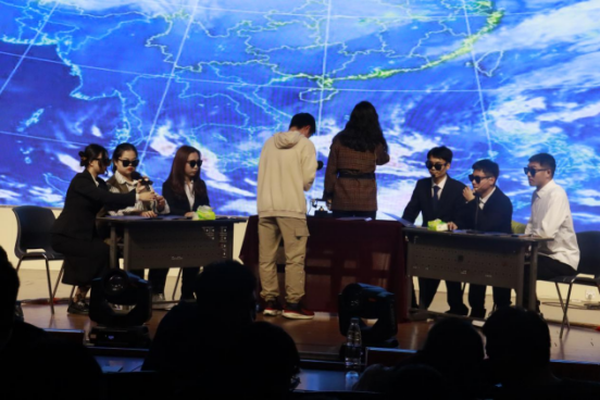 中场环节为趣味游戏——模仿大师,学院教师何海峰、钟文建、石臻积极参加,师生互动频繁,现场气氛异常火热,拉近了老师与学生间的距离。